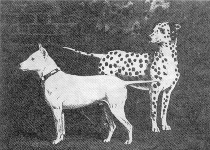 В родословных тех лет царит полная неразбериха. Сказать с точностью, от сочетания каких пород произошел бультерьер, невозможно. Впрочем, вполне достоверно установлено, что Хинкс, и его сын подтверждает это, использовал в кроссах преимущественно старотипных бульдогов (более высоконогого типа, чем сегодня), белых английских терьеров и далматинов. Возможно, он приливал к ним крови грейхаунда, испанского пойнтера и фоксхаунда. Нам известно, что еще в 30-х годах нашего столетия периодически рождались бультерьеры с ушами как у гончих. Имеются туманные предположения, что более длинной голове и крутому дугообразному профилю буль обязан борзым или гладкошерстным колли, так как порой в пометах рождаются щенки с длинной и узкой мордой, как у этих пород. (В Англии кроссбредных собак можно зарегистрировать, и их четвертая генерация считается чистопородной).