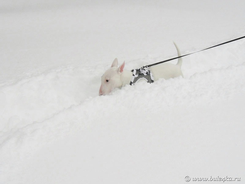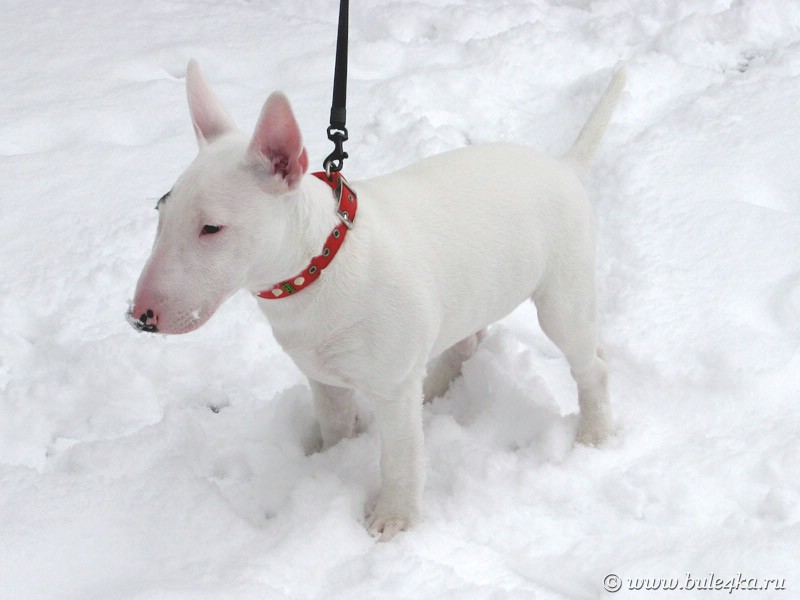 Фото миниатюрного бультерьера Сахарка зимой 2008-2009